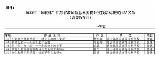 近日,省教育网络安全和信息化领导小组办公室公布了“2023年‘领航杯’江苏省教师信息素养提升实践活动”参赛作品评选结果,我校推荐的5件参赛作品均获一等奖。