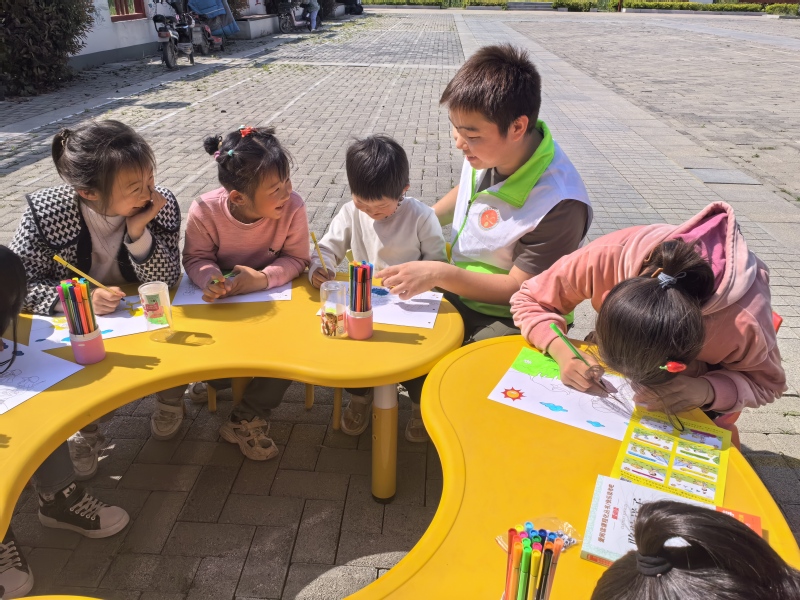 志愿者们为乡村孩子们送去了三百余本红色绘本书籍,和孩子们共读了“一粒种子改变世界”“红船,红船”“迎春花开”等红色绘本,陪伴指导孩子们绘制了“小英雄雨来”“雷锋的故事”“鸡毛信”等自制故事绘本,为孩子们讲述绘本中的红色革命故事,让孩子们在绘画中收获了知识和快乐。在分享环节,孩子们踊跃发言,向志愿者们分享了自己的阅读感受,展示了一幅幅充满童趣的美术作品。活动还以旧书换新书形式,让孩子们用家中的旧书换取一本新绘本,助力知识阅读流动起来。通过红色绘本伴读伴绘,让孩子们在轻松愉快的氛围中感受关爱、提升美感,潜移默化间受到红色文化熏陶和美的浸润滋养。