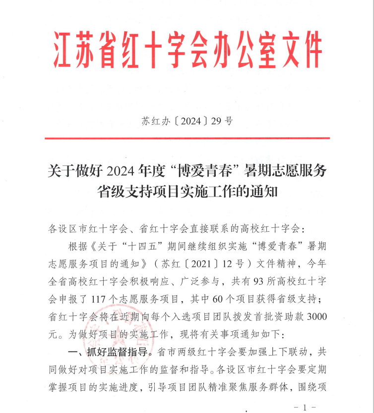 近日,江苏省红十字会办公室公布了2024年全省高校红十字会“博爱青春”暑期志愿服务省级支持项目名单,我校“情系港城助童行 志愿青春展担当”项目从93所高校、117个子项目中脱颖而出,成功入选省级支持项目。我校防艾宣传教育类志愿服务项目“拥抱爱,远离‘艾’”成功入选省红十字青少年志愿服务项目发展计划(博爱青春·星火计划)重点培育项目。我校“求知笃行 助梦飞翔”等8个志愿服务项目成功入选2024年高职校红十字会“博爱青春”暑期志愿服务市级支持项目。