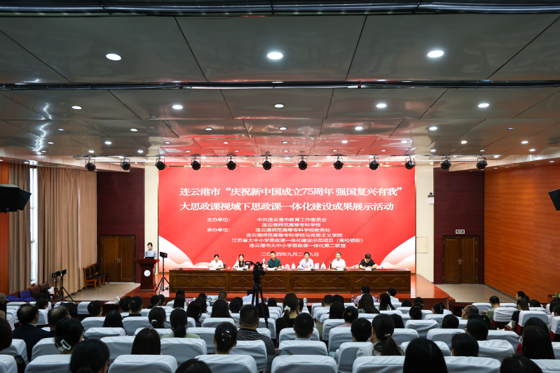 近日,“庆祝新中国成立75周年 强国复兴有我”连云港市大中小学思政课一体化建设成果展示活动在我校举行。市委教育工委副书记林田海出席活动并致辞,我校副校长丁红星和相关职能部门、马克思主义学院负责同志及市三县三区、开发区、徐圩新区、景区各学段、高校、直属单位及思政课一体化教育联盟学校的相关领导和教师代表参加了活动。活动邀请南京师范大学、无锡职业技术学院、江苏省淮阴中学及连云港高级中学、连云港市教科所相关专家教授作点评嘉宾。