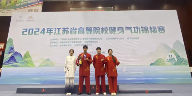 日,2024年江苏省高等院校健身气功锦标赛在镇江句容举行。此次比赛共有来自32所院校56支代表队270余人参加,我校代表队获得一等奖2项、二等奖4项的优异成绩。学校获得“体育道德风尚奖”。