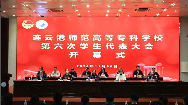 近日,连云港师范高等专科学校第六次学生代表大会在玖兴楼隆重召开。校党委副书记刘长虹,共青团连云港市委副书记闫美玲,学生工作部部长、各学院党总支副书记、分团委书记,兄弟院校学生会代表出席开幕式。